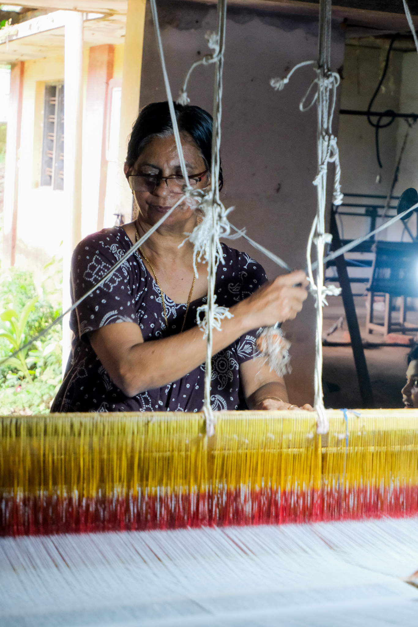 This forms the heartbeat of the handloom society. The women have been working together for years, practising their beloved craft and looking after each other. This is their world, where their artistic spirits soar. Every day, they make the things they love, weaving each thread with hundreds of stories.