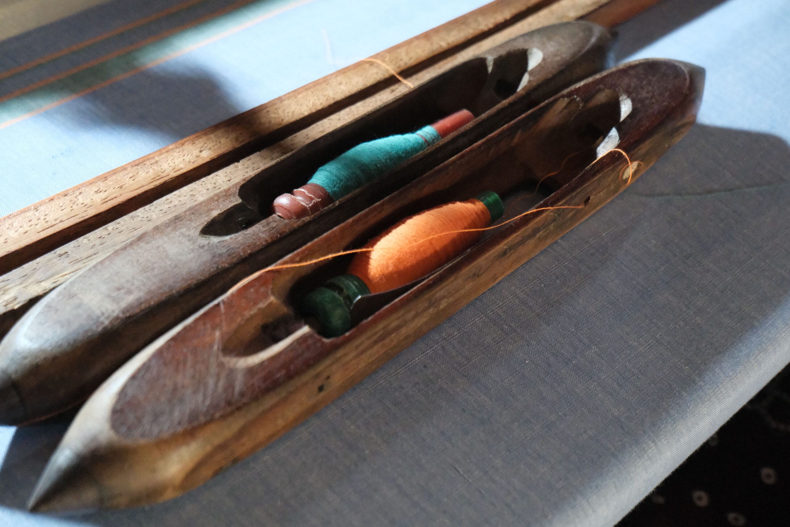 The weft threads, which run horizontally, are wound onto a shuttle. The weaver then moves the shuttle back and forth through the warp, using pedals to control the movement. This rhythmic process interlaces the threads, bringing the fabric to life.